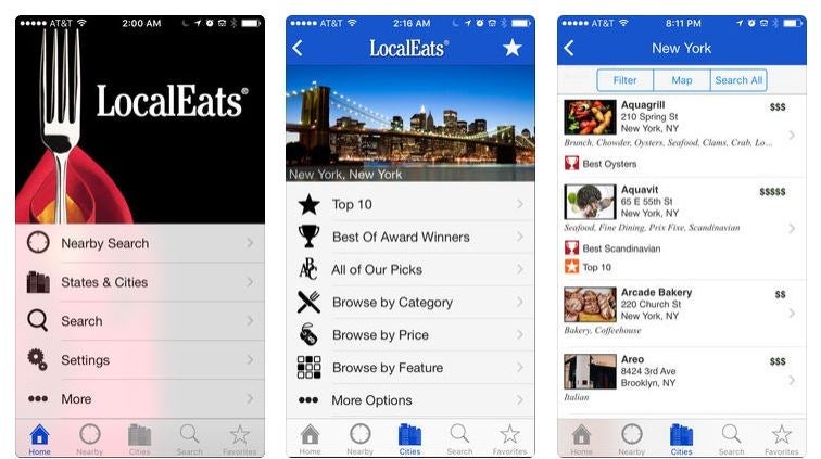 Located in all 50 states and and many cities around the world — including Bangkok, Istanbul, Jerusalem, Johannesburg, Mumbai, Quebec City, Tokyo and more — Local Eats helps to find the perfect restaurant, recommending only local businesses, and never chain restaurants. With filters like price range, cuisine style and meal style (dinner, brunch, late-night, etc.) you'll discover the perfect Mexican spot in Tucson, Arizona, or the best tapas bar in Madrid. You can see Top 10 lists for each region, save your favorites places and recommend them to friends.