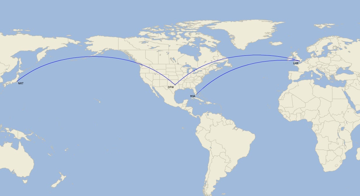 - Dallas/Fort Worth (DFW) - London Heathrow (LHR) and Tokyo Narita (NRT)
