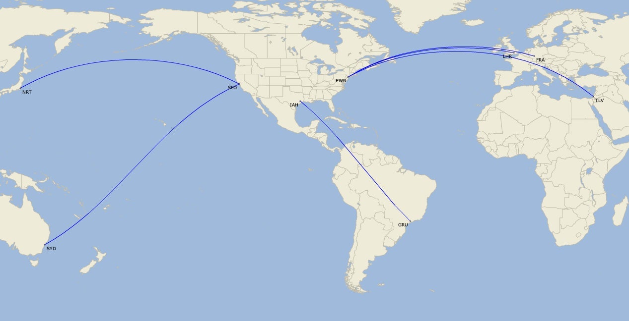 - Newark – Frankfurt (FRA), London Heathrow and Tel Aviv (TLV)