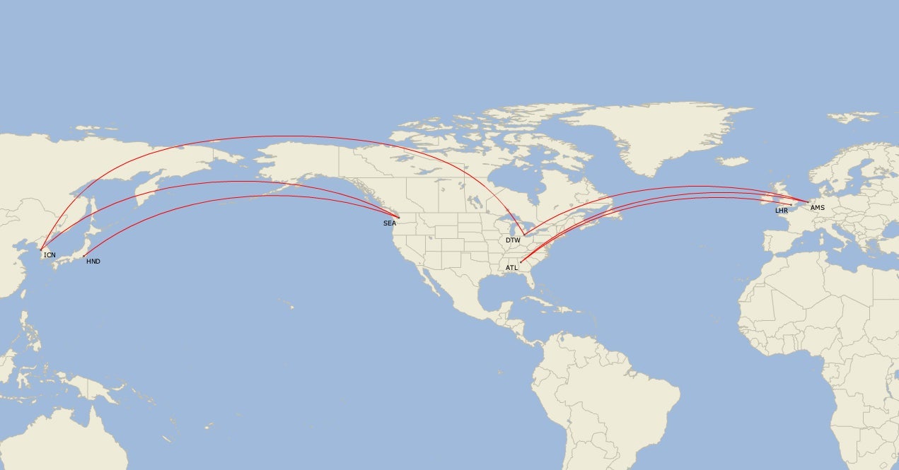 - Detroit (DTW) - Amsterdam and Seoul Incheon (ICN)