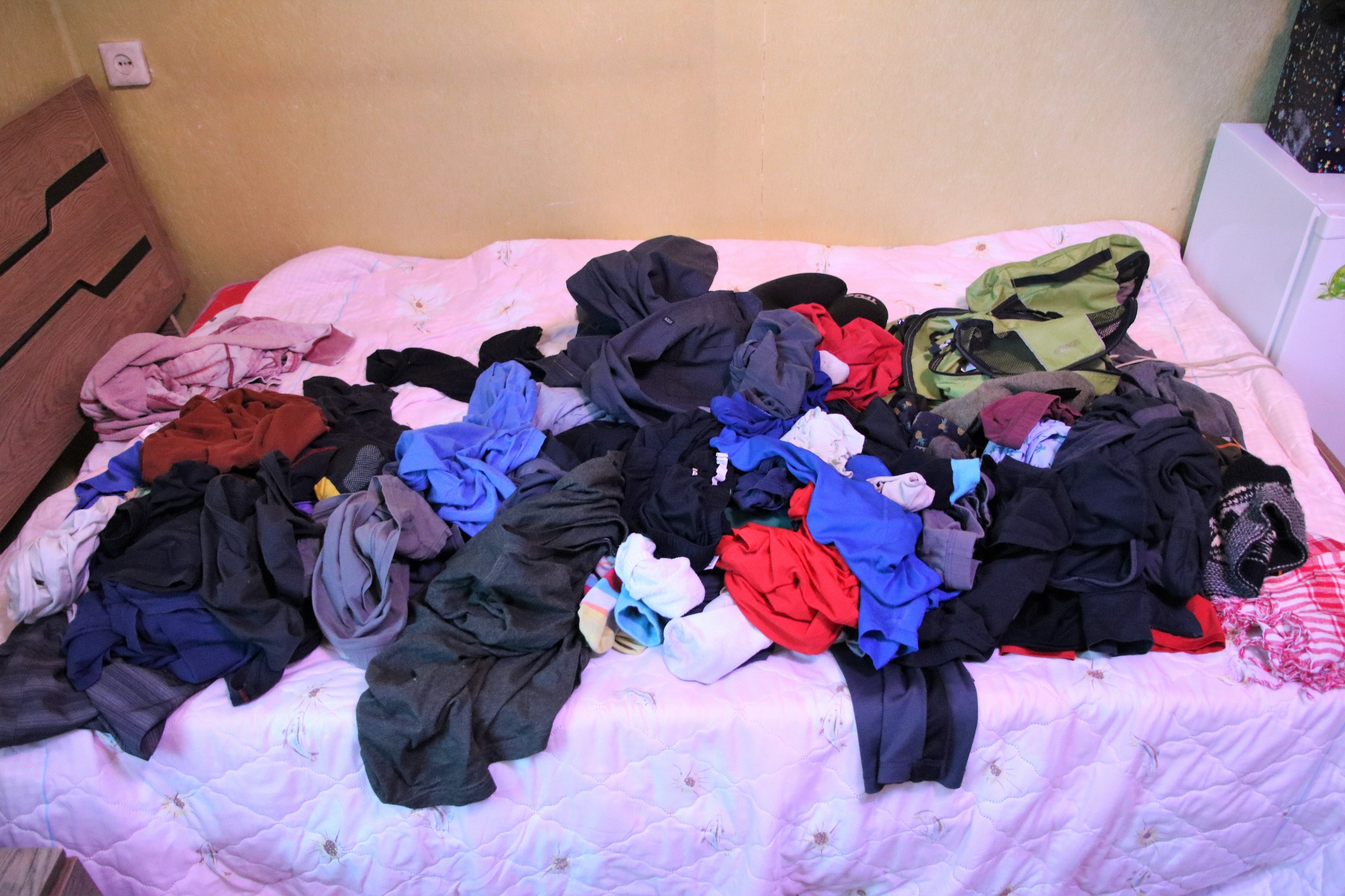 To demonstrate the efficiency of the Ranger Roll with the dramatic effect of a 1980s infomercial, I piled all of my clothes into a messy heap.