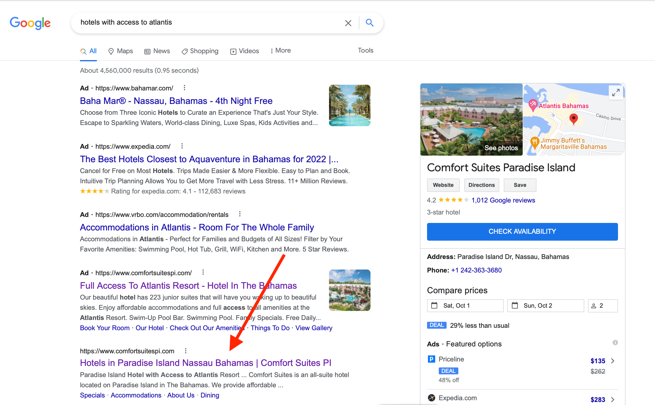 So, once I booked our Southwest Airlines flights with points, I Googled "hotels with access to Atlantis" to see what would come up. That's when I found the Comfort Suites Paradise Island.