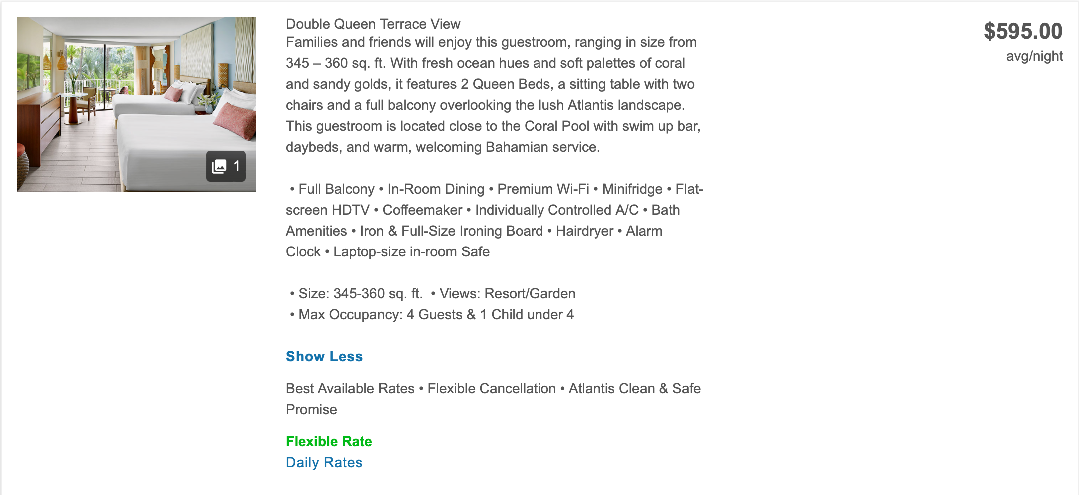 If I was I to try booking a four-night stay in a family-friendly Coral room now for the same time next year, I would need to shell out $2,380 (or $595 per night, as the above screenshot shows) — an exorbitant amount for a family on a budget.
