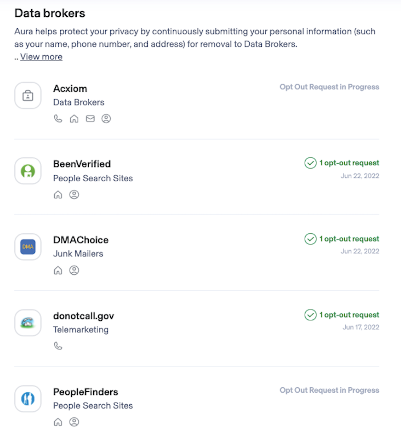 I was even alerted that my Experian credit report had been frozen on my behalf. I was surprised and happy to receive this notification, because it reminded me that I had forgotten to refreeze my report after the last time I applied for a credit card. Additionally, Aura automatically requested the removal of my information from multiple data broker websites that were selling my personal details — which will lead to fewer of those dreaded spam emails and robocalls.