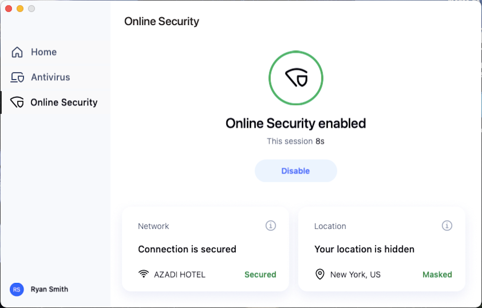 Whenever I had the desktop app open, I was able to run the antivirus search at will to check for any malware on my computer.