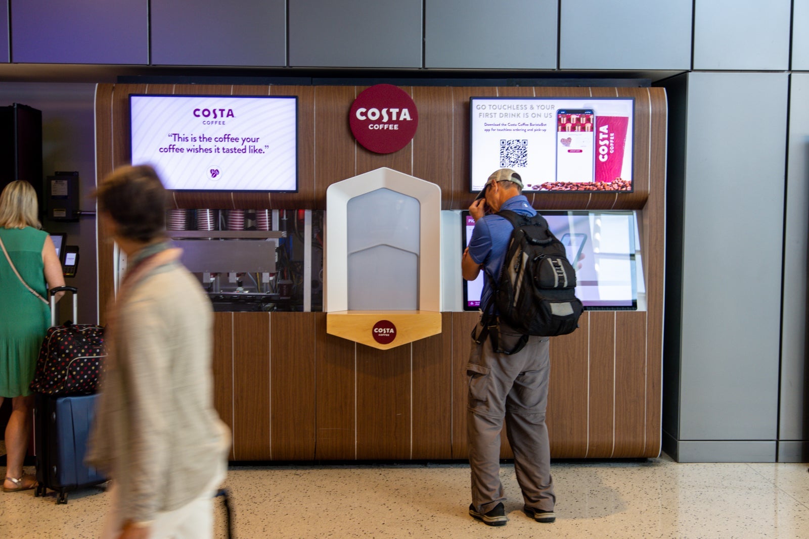 Those looking for a cup of joe have two interesting options. While not exactly local, you can check out the Costa Coffee machine near Gate 13. Just enter your order on the machine's touchscreen and a robot arm will prepare your cappuccino, latte or whatever else you desire before an early flight.