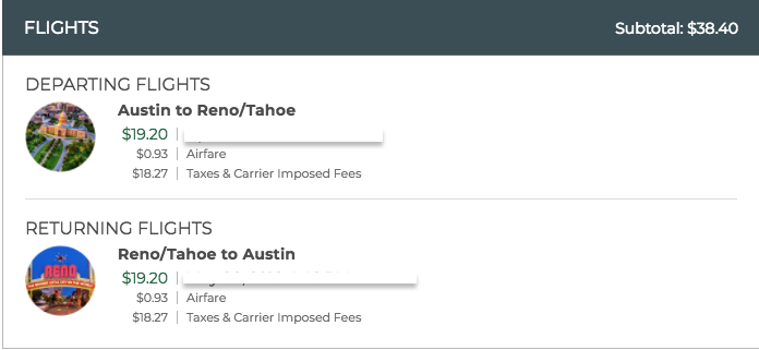 If you are interested in snagging one of the Frontier Airlines $20 fares, they are on sale until March 30th, for travel on select dates from 4/10/18 - 5/16/18. Along with the Austin - Reno route my dad booked, here are a few other examples of routes all available starting at $20 each way.