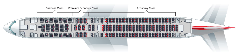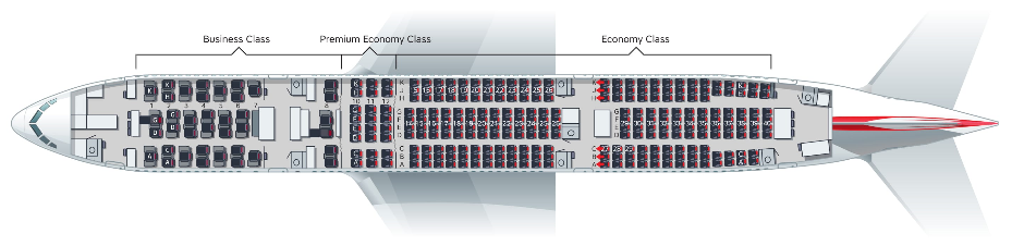 Premium economy will be arranged in a 2-4-2 configuration on this plane, with a total of 24 seats spread between three rows. 10 business-class seats will be removed to accommodate the new cabin, which unfortunately may mean less availability for awards.
