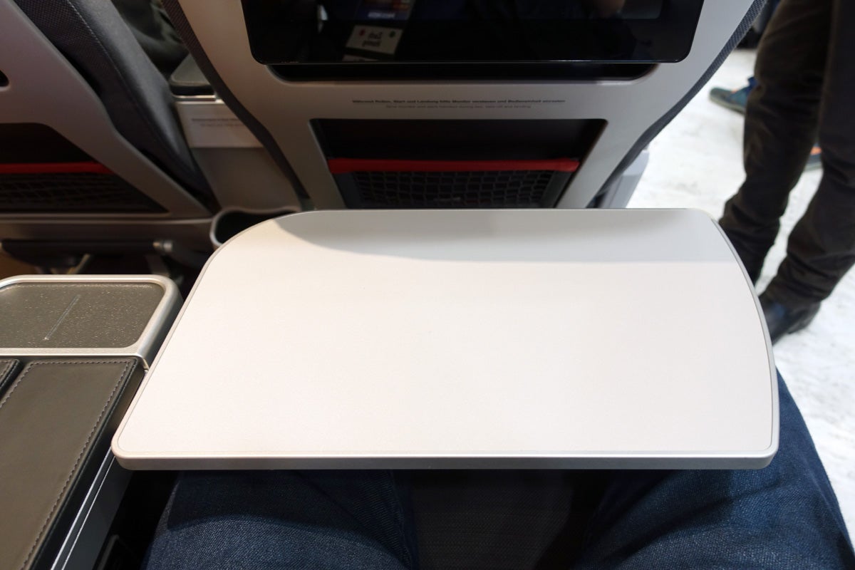 The tray table, meanwhile, is large — and that additional space may be necessary, given the upgraded catering.