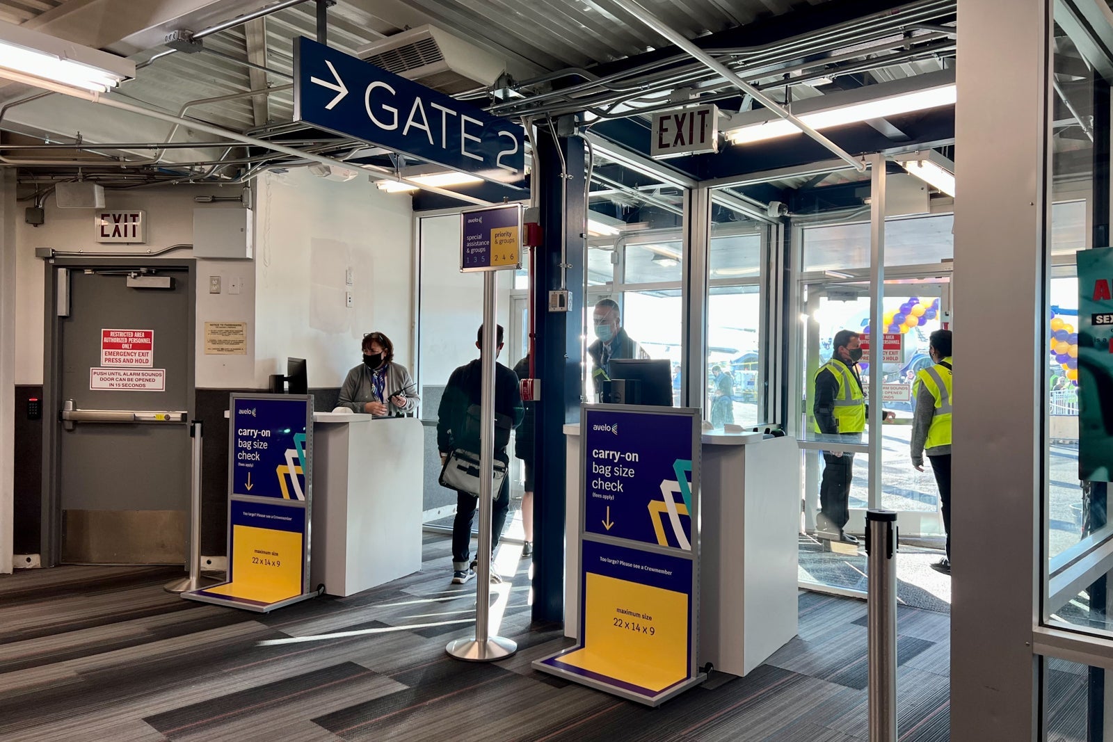After exiting the trailer, I entered the main terminal for security and boarding. There was a single TSA agent checking everyone's identification, which funneled into two checkpoints — neither of which featured Precheck since Avelo isn't yet a member of the program.