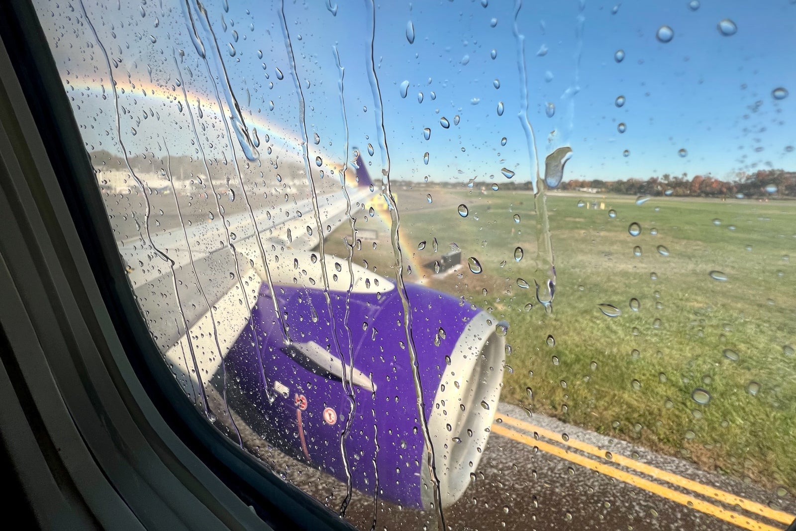 And just like during departure, those on the port side of the plane got a glimpse of a fleeting rainbow — perhaps a harbinger of good things to come as Avelo inaugurates its new East Coast hub, and starts its first of six routes to Florida.