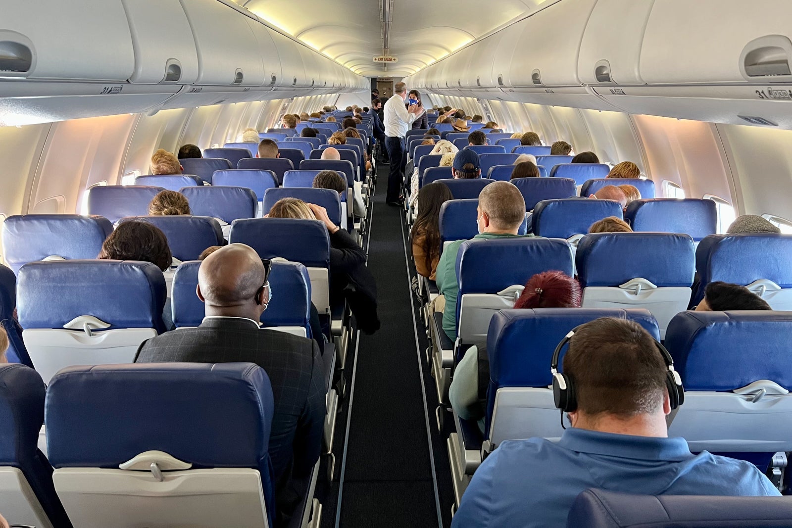 Before long, boarding was complete, and Avelo managed to nearly fill the plane with a handful of paying customers, as well as executives, local officials and journalists.