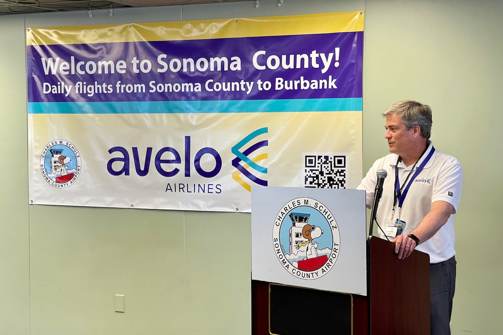Avelo Airlines took to the skies for the first time Wednesday with an hour-long flight from its West Coast base in Burbank (BUR) to Santa Rosa, California (STS).