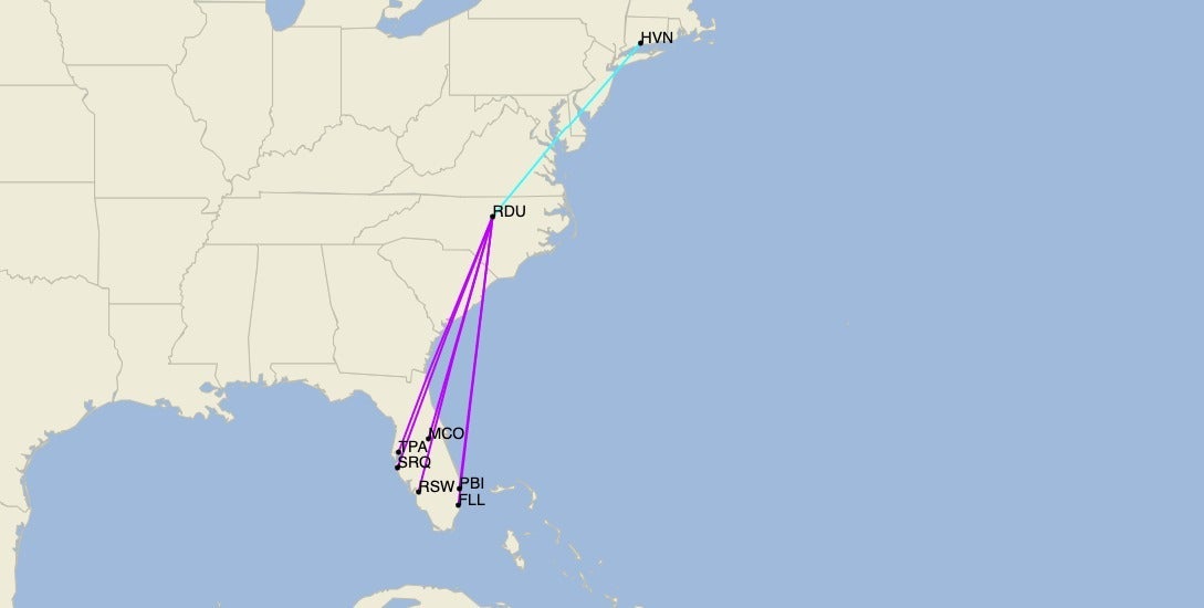 Avelo will be the only airline serving RSW, SRQ and PBI from RDU, but will face fierce competition on the three other new Florida routes. On the FLL route, Avelo will compete with JetBlue, Delta and Southwest Airlines. Flying to TPA, Avelo joins service from American Airlines, Delta and Southwest. Avelo faces the most competition for Orlando, which also happens to be another of the airline's bases. It will go head-to-head with Delta, Frontier Airlines, Spirit Airlines and Southwest Airlines.