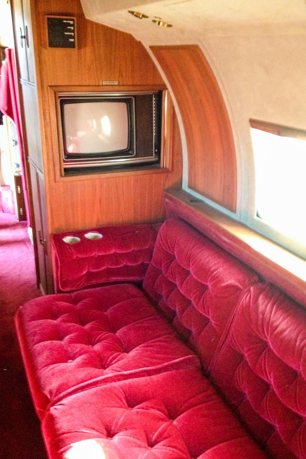 Inside, there was a fabulous – for its time – couch and TV set. Oh, how in-flight entertainment has changed.