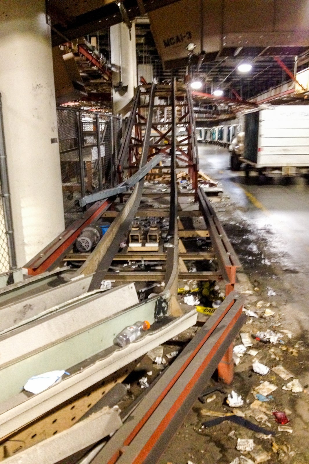 Today, the airport's baggage operating system works like many other major hubs, with tugs carrying carts full of bags around. But in one of the subbasements (one of the many airport conspiracy theories talks about secret bunkers down here) you can still see remnants of the automated system.