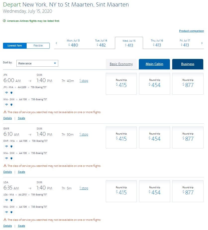 The earliest Delta flight to St. Maarten is on Aug. 6 out of Atlanta (ATL), which means that travelers from outside the area may have to depart on the previous day to catch this connecting flight. Booking on roundtrip main cabin will cost you $757 ($687 for basic economy).