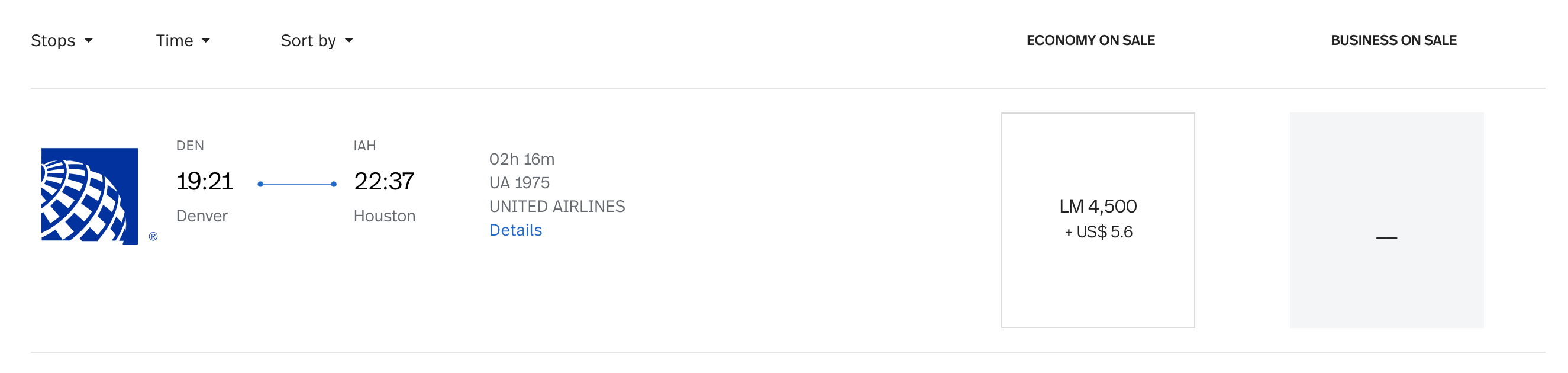 Take this flight from Houston (IAH) to Denver (DEN). A one-way economy flight from US Zone 2 to US Zone 3 should cost 12,500 LifeMiles, but instead it's pricing out at 3,500 miles, a discount of 72%.