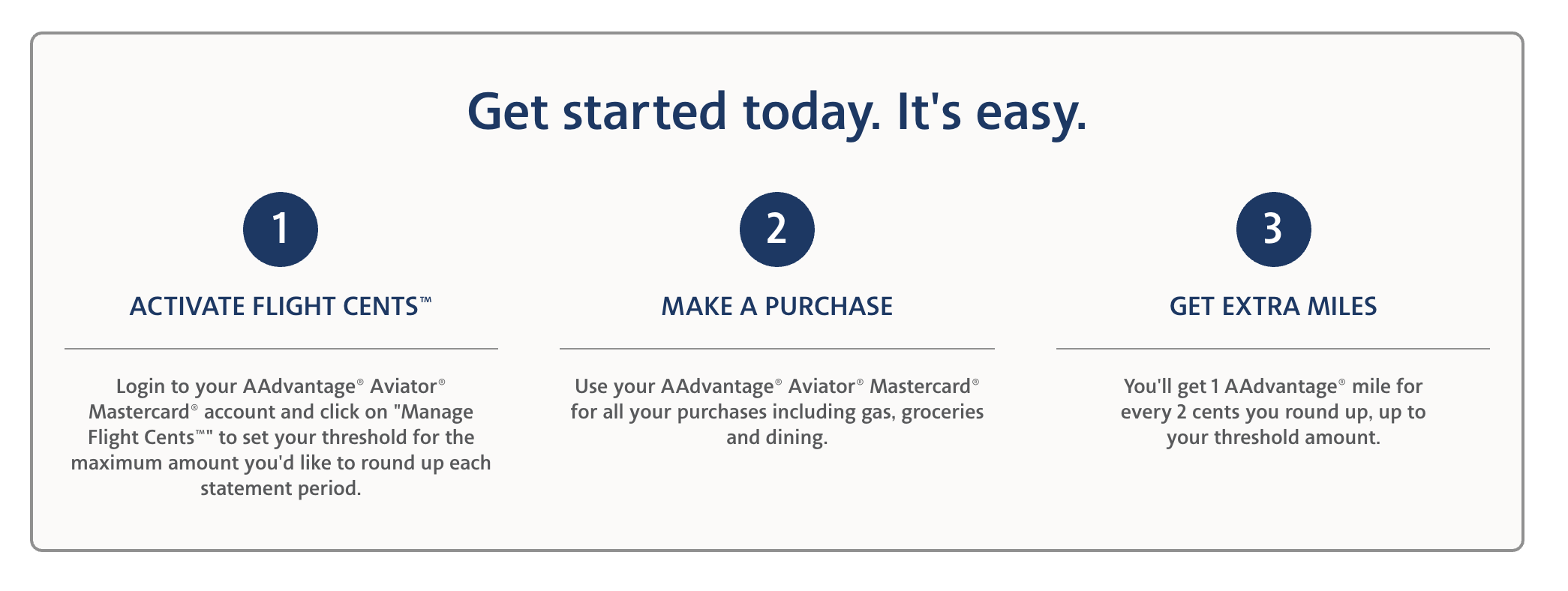 Flight Cents is a voluntary program through Barclays that allows you to round up purchases to the nearest dollar to get additional AAdvantage miles. If you're an Aviator Red or Silver cardholder, you can opt in and set a threshold from $1 to up to $500 per statement period.