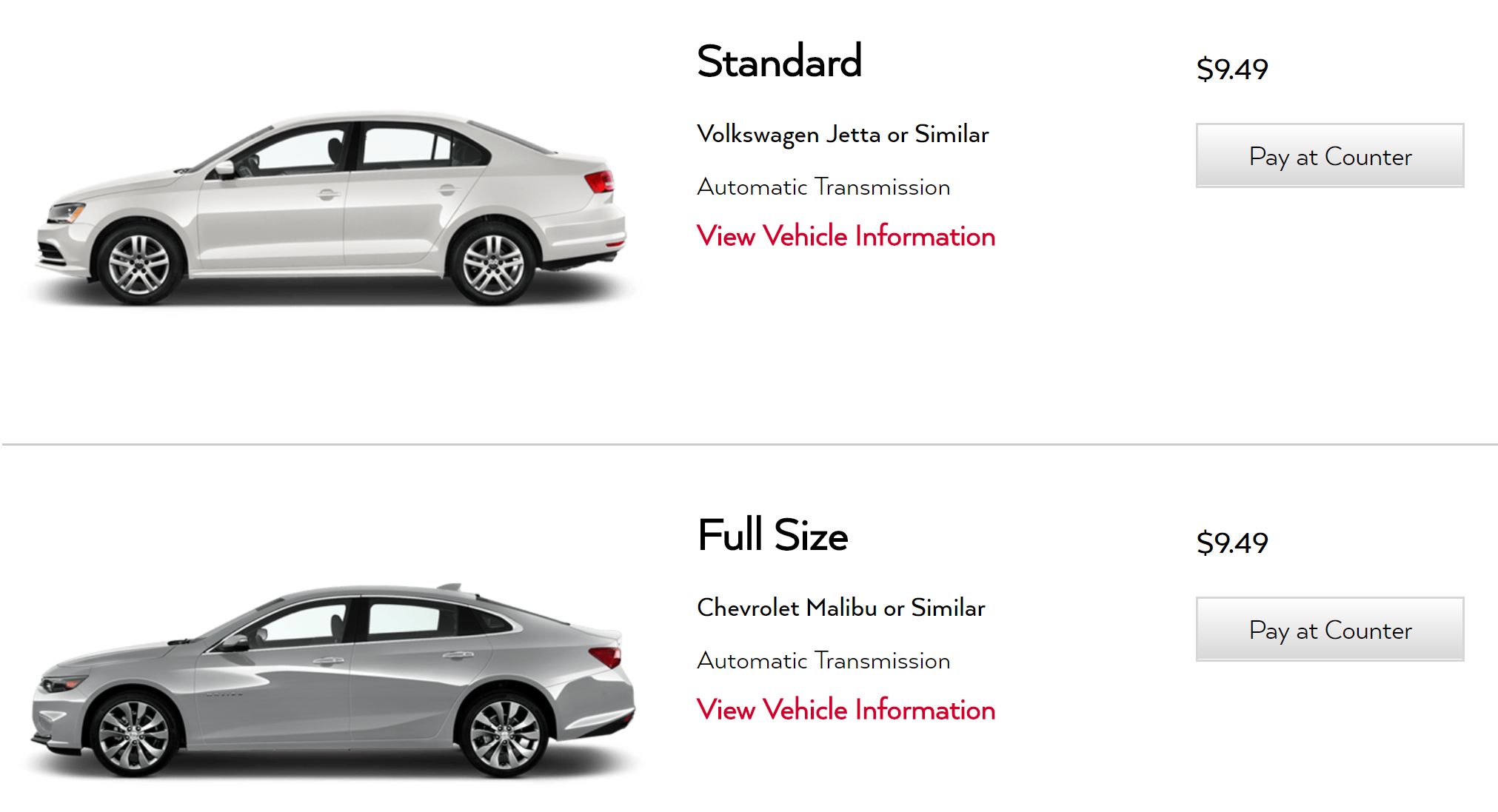 - Economy, Compact, Intermediate, Standard, Full-Size: $9.99