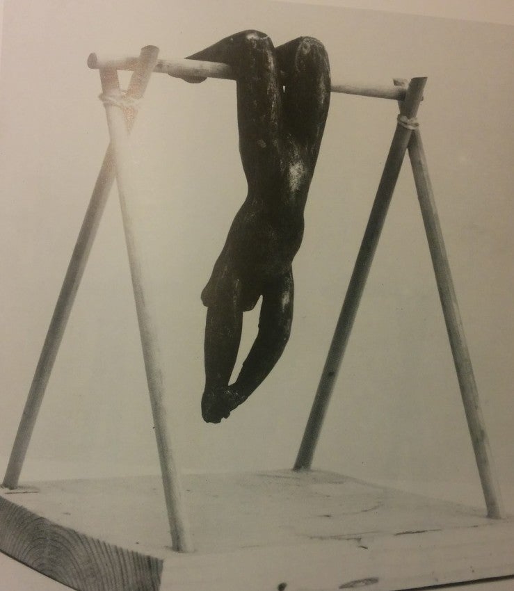 My eye and heart were caught by a small bronze figure hanging upside-down from its knees, suspended over a crossbar. It was lumbering and heavy and graceful and dynamic, and I knew just where it belonged: in my living room.