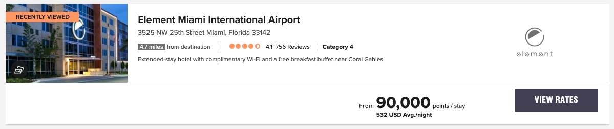 Element Miami International Airport — 90,000 Bonvoy points (prices given are for three nights)