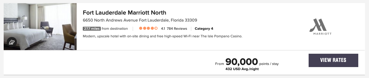 Fort Lauderdale Marriott North — 90,000 Bonvy points (28-minute drive from Hard Rock Stadium)