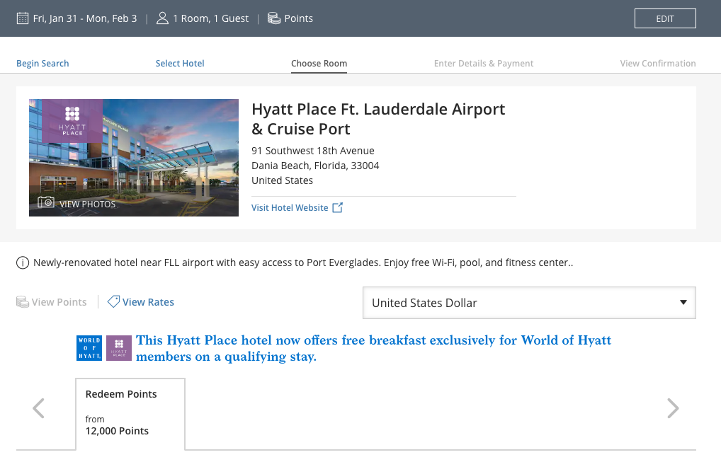 Hyatt House and Hyatt Place Ft. Lauderdale Airport & Cruise Port — 36,000 World of Hyatt points