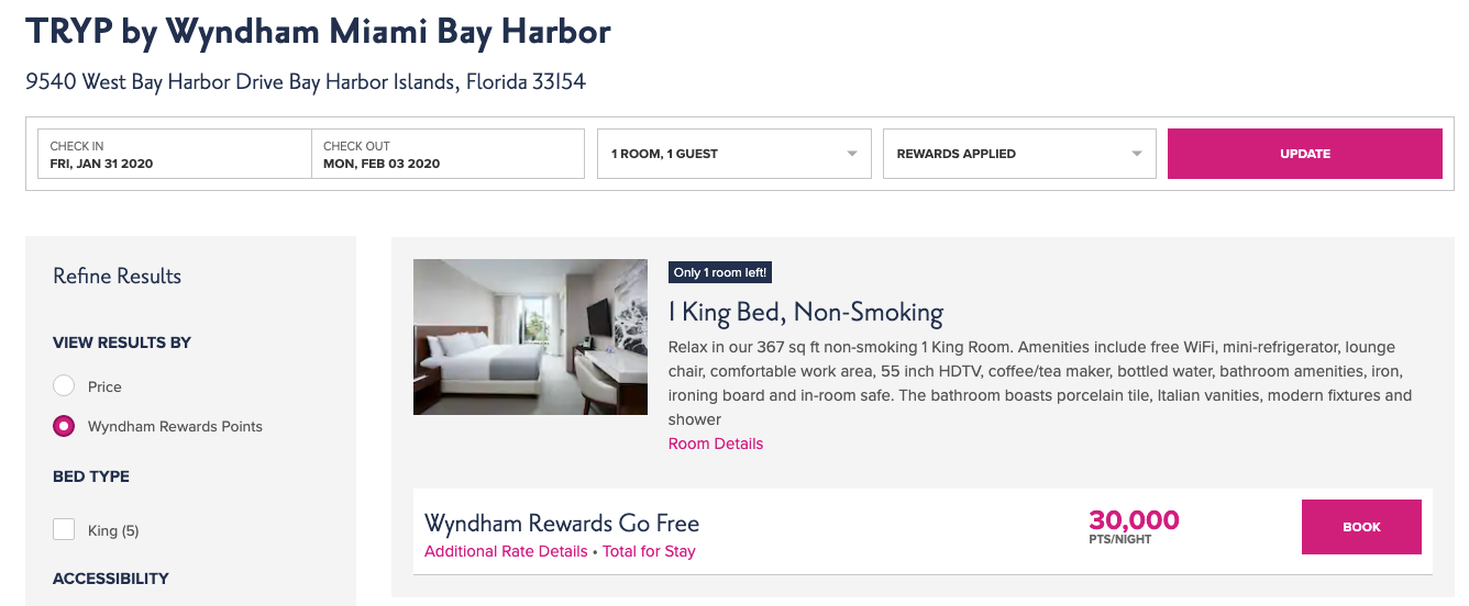 Moving outside of the big three hotel programs, don't forget about programs like Wyndham Rewards and Choice Privileges. Wyndham has multiple La Quinta properties in Miami and Fort Lauderdale with award space for 15,000 Wyndham points per night. The Tryp by Wyndham Miami Bay Harbor resort is available for 30,000 points per night.