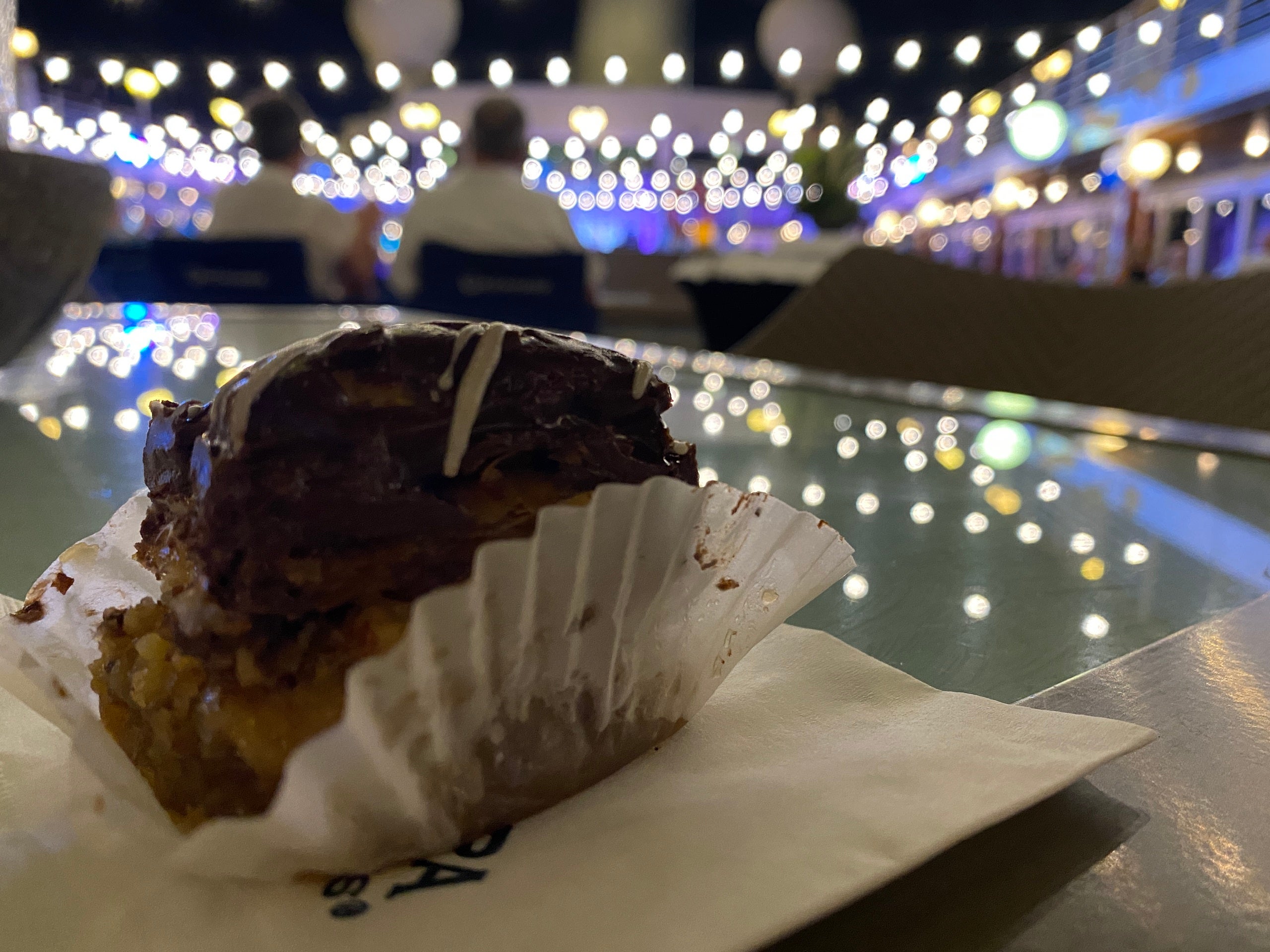 On this week's sailing of Azamara Quest -- a Greek Isles voyage from Athens with stops at Cyprus, Rhodes, Crete, Mykonos and Santorini -- the first Destination Celebration took place at Rhodes, where the ship remained docked until 10 p.m. The captain kicked off the event that night at 8:15, and drinks were provided, along with a selection of pastries, including baklava.