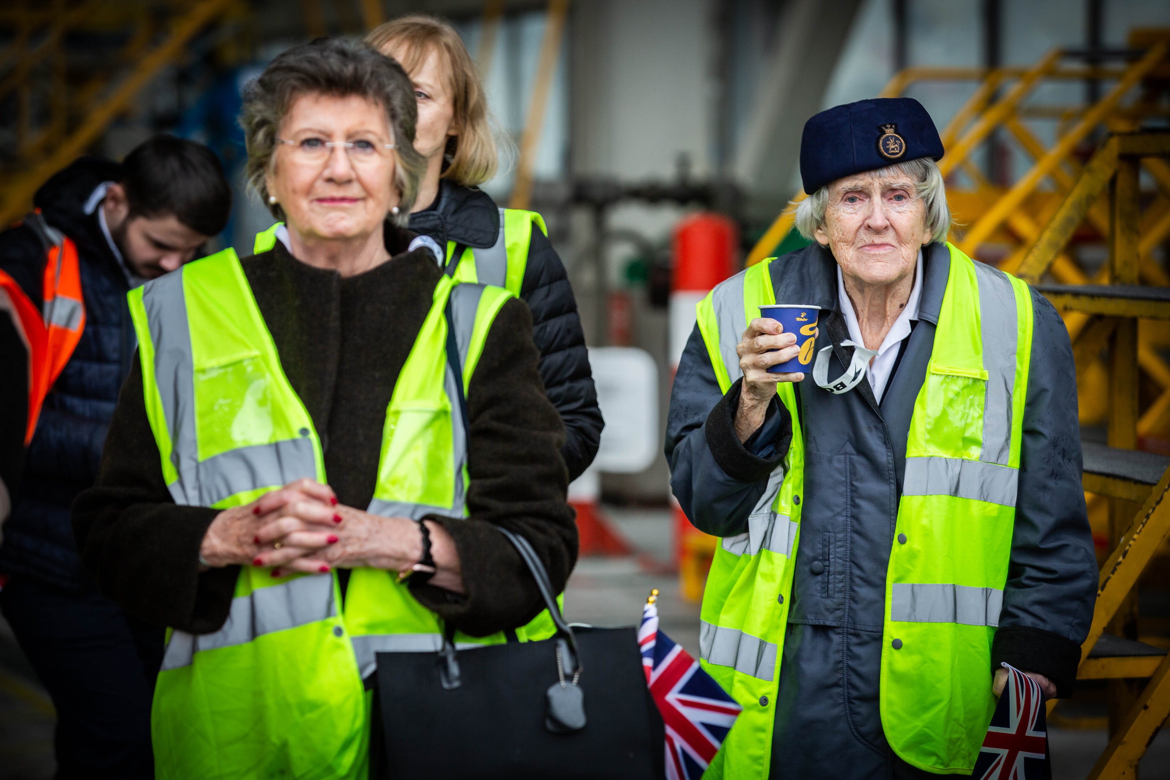 The weather didn't keep the excitement level among crew — both current and former — and spectators down. Former BOAC flight attendants, and current crew showed off the retro uniforms from the BOAC days, which were taken out of storage for the special occasion.