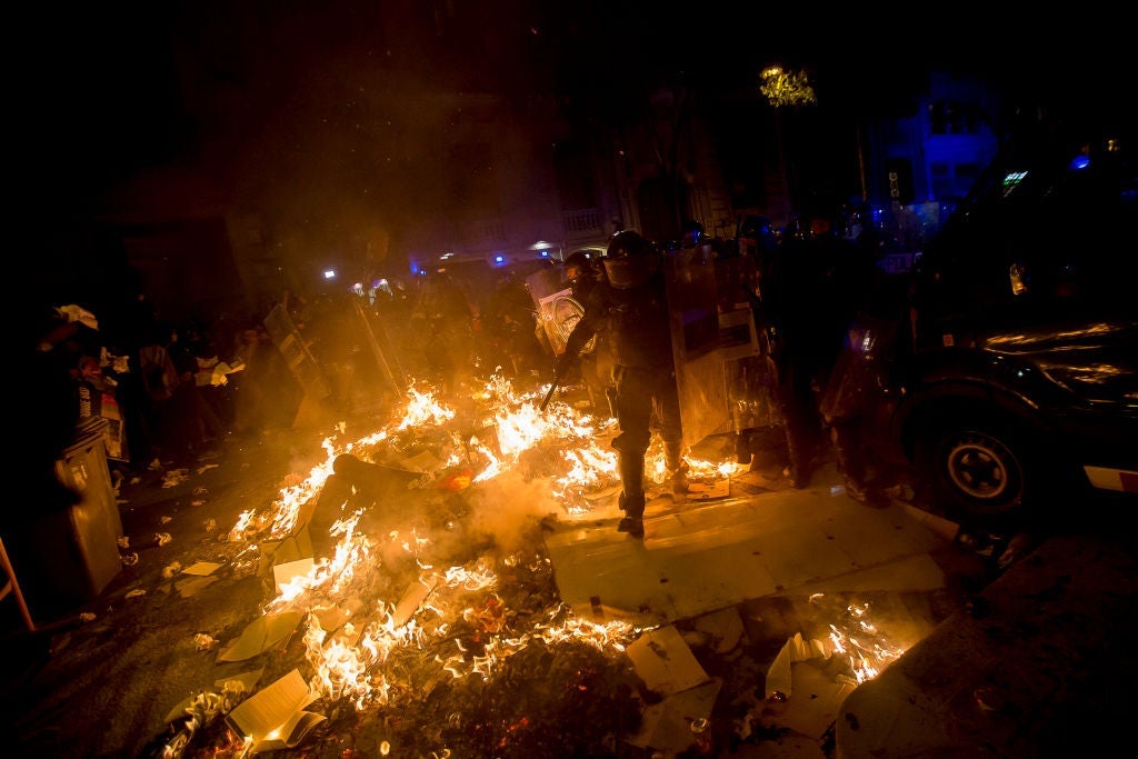 Although many of the protests around the city have been peaceful, some have used barricades and fire to incite more serious disturbances, resulting in altercations with the Mossos (Catalan police). La Vanguardia reports that 74 people have been injured and 25 detained. Protests and riots have also spread to nearby cities such as Girona, Tarragona and Lleida.