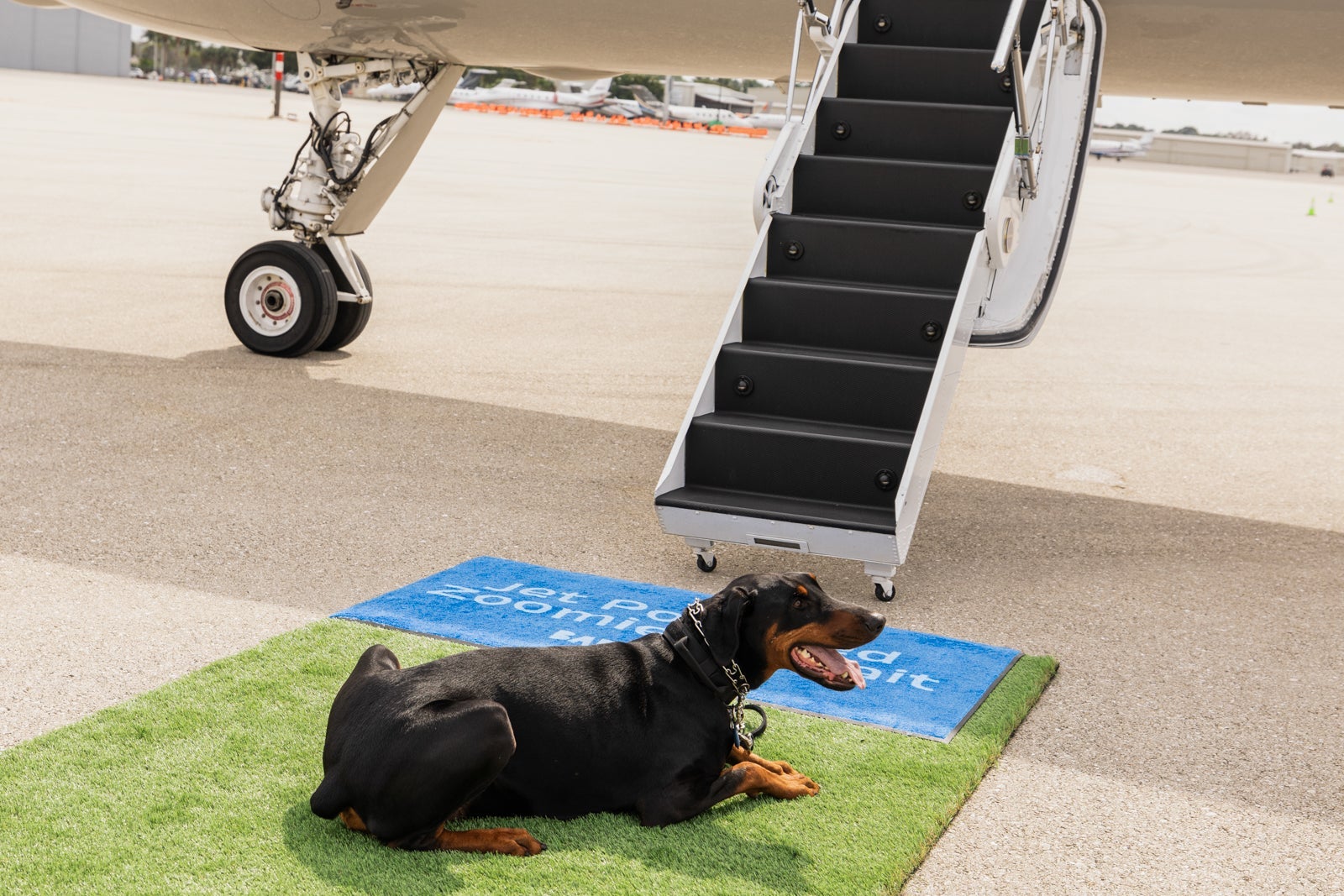 However, for its new dog-focused scheduled air service, Bark is partnering with private jet charter company Talon Air. It promises a "white glove experience typical of a human's first-class experience," complete with car service to and from the airport and concierge guidance throughout the experience.