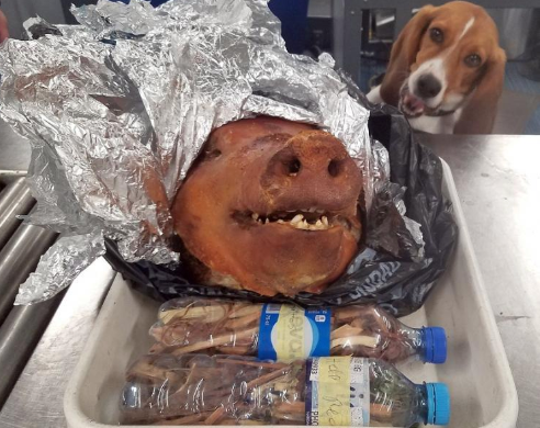 Hardy the beagle, a CPB Agriculture Detector on the agency's "Beagle Brigade," found a whole roasted pig in an Ecuadoran passenger's checked luggage at ATL. When authorities opened up the bag, they found the head of the roasted pig inside, wrapped up in tin foil, CBP said in a statement.