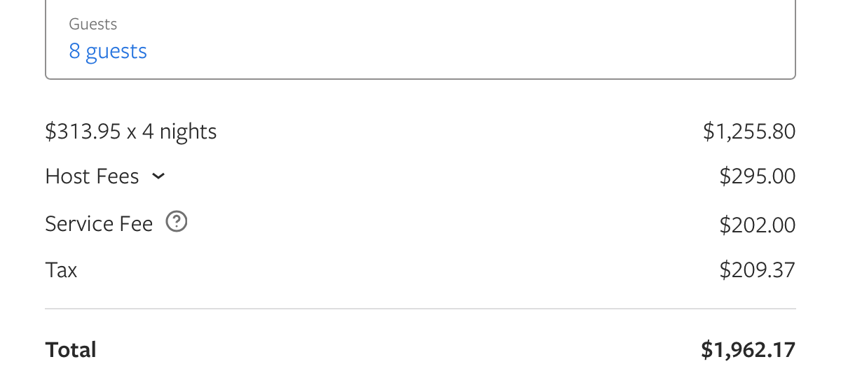 We split the cost five ways, paying a mere $392.94 each, which was far more economical than booking four hotel rooms for our group of eight.