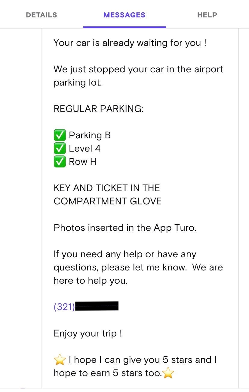 The price included a full tank of gas, basic supplementary insurance, 800 miles of use and a pickup and drop-off of the van at Parking Garage A at MCO. I communicated with the car's owner via the message section of the Turo app, so I knew exactly how to locate the vehicle.