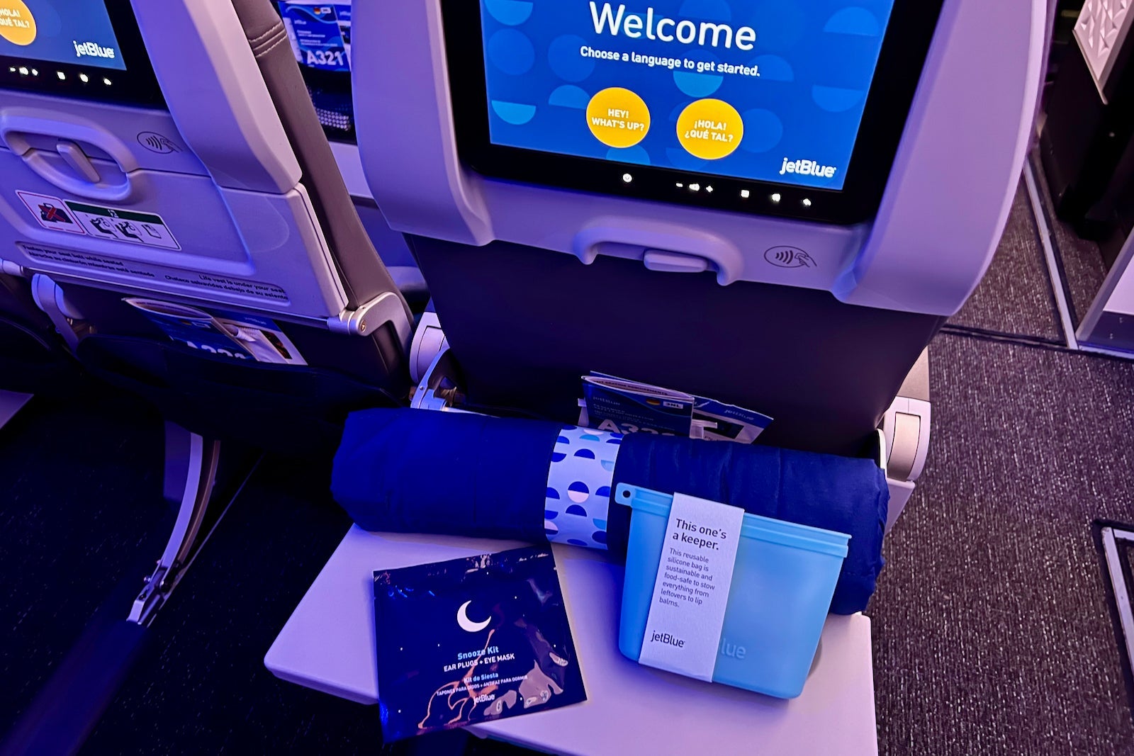 Snacks are available throughout the flight at a walk-up bar, and all of JetBlue's signature amenities — free TVs, Wi-Fi and power outlets — are available on these longer missions, too.