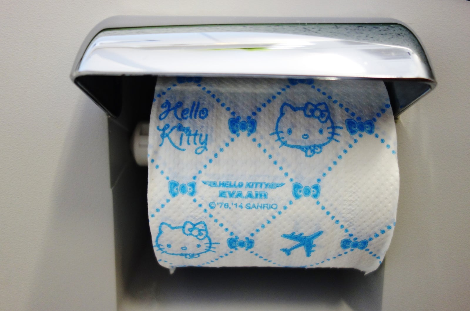 What's cooler than that? The Hello Kitty toilet paper seen by Dominic F. in an EVA Air lavatory.