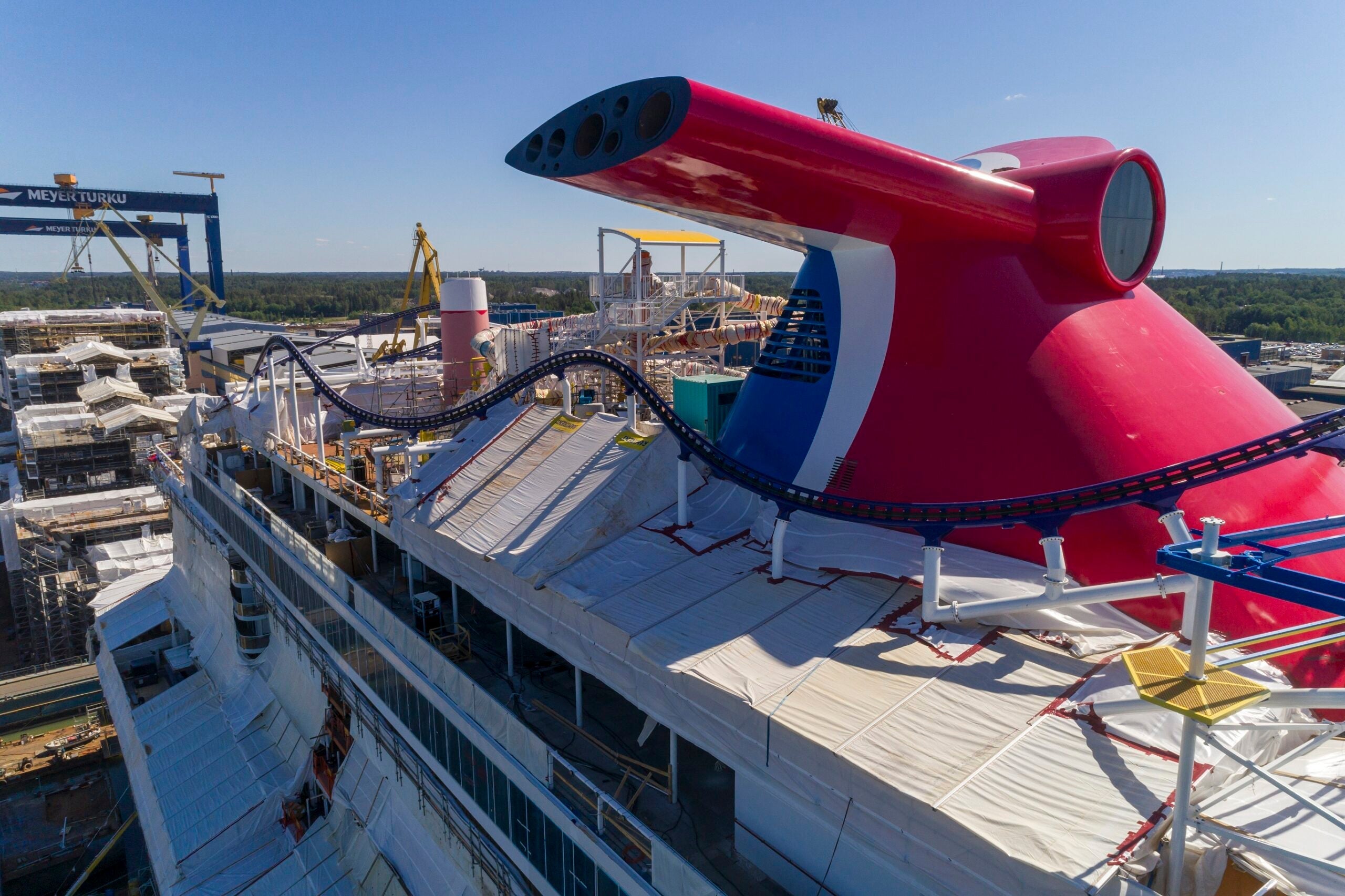 The new BOLT roller coaster under construction in October atop Carnival Cruise Line's soon-to-debut Mardi Gras. (Photo courtesy of Carnival Cruise Line)
