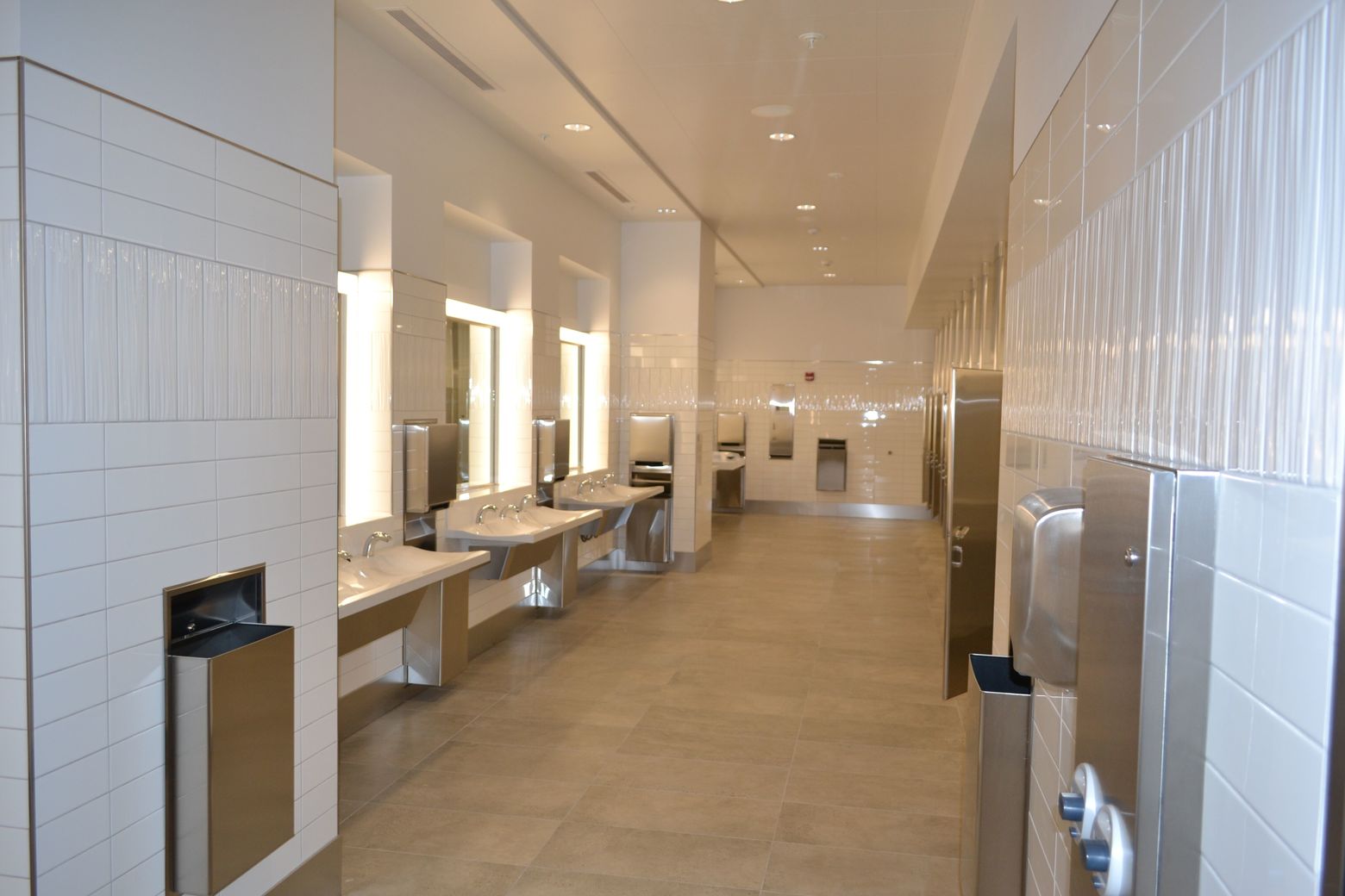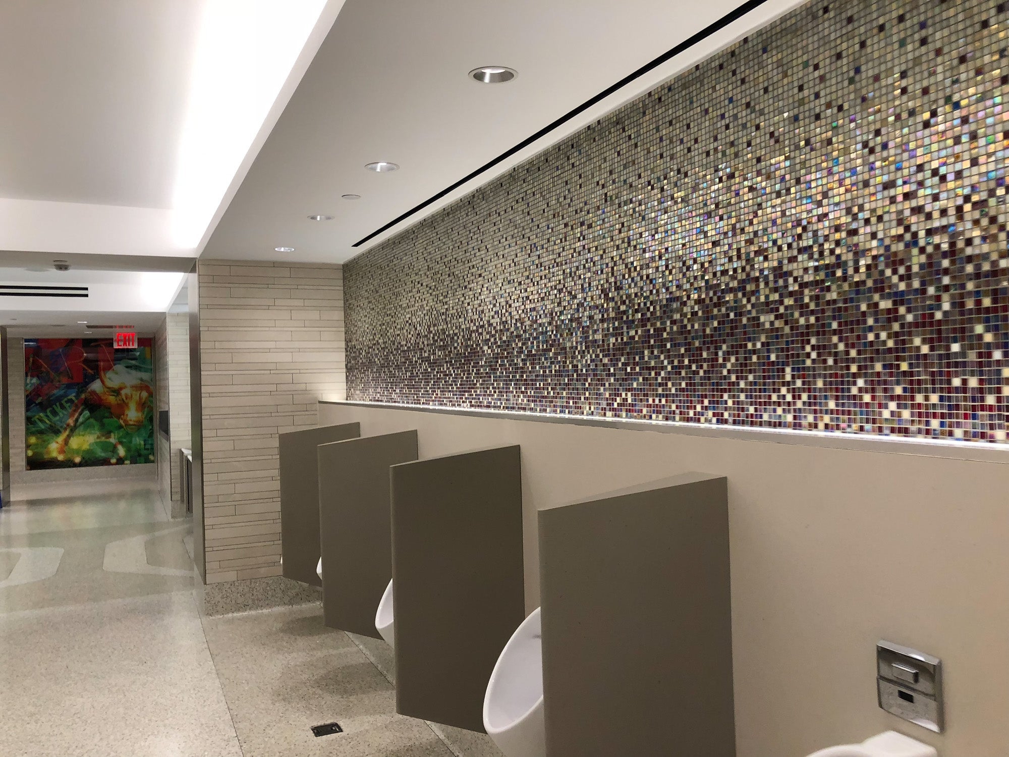 The sparkly new bathroom in Seattle was built as part of the Seattle Terminal Modernization Project, the same one that brought you Alaska Airlines' fancy new lounge. It has quartz multistation stalls; environmentally-friendly flush fixtures that use rainwater; separate sinks in the ADA-compliant stalls; and, of course, automatic soap dispensers.