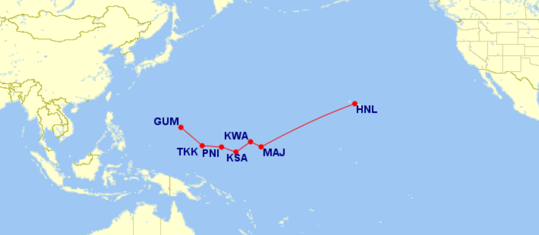 For the uninitiated, United operates a flight between Hawaii and Guam that stops at five different islands in the Pacific Ocean. The 14-hour flight is operated by a Boeing 737 and it serves as a lifeline for many of these islands.