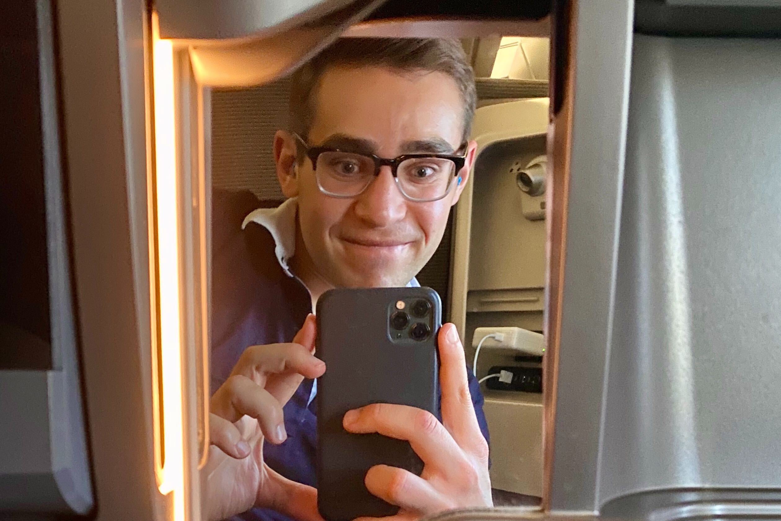 Naturally, that meant that I took some shots in the cockpit and in different seats. But then my curiosity got the best of me — could I fit in an overhead bin?