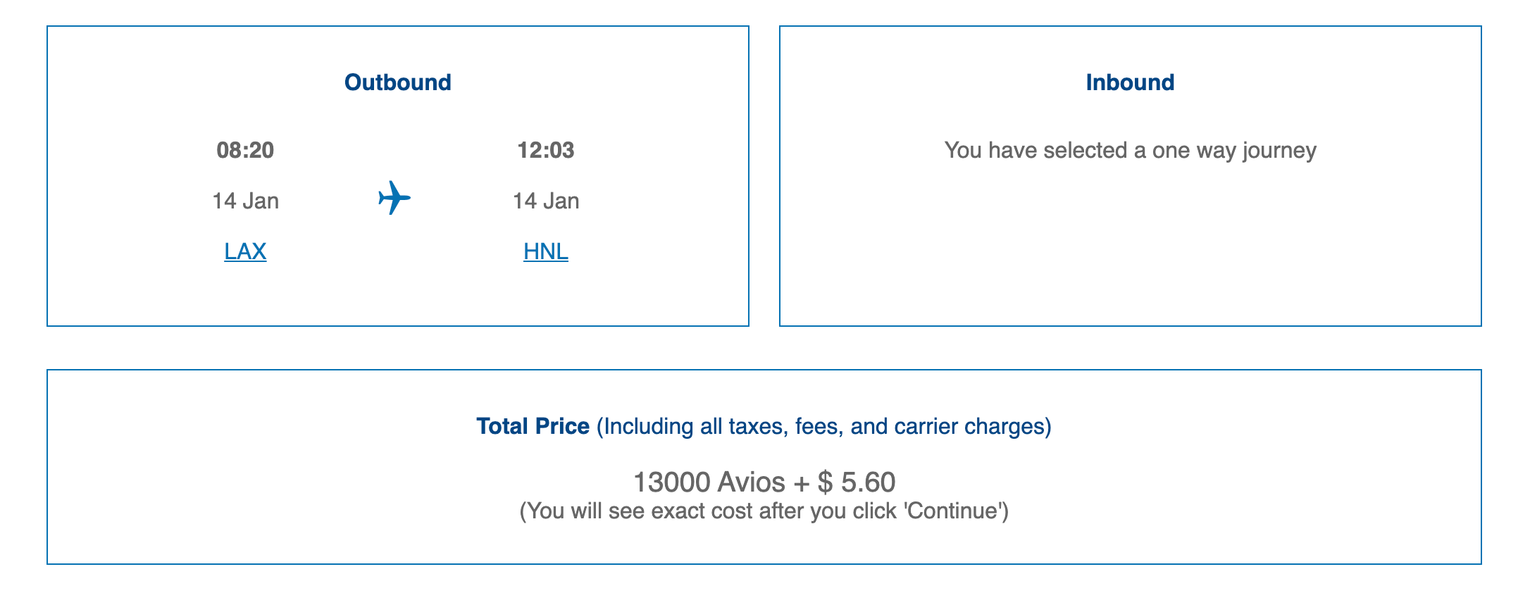 For instance, a flight from Los Angeles to Honolulu costs just 13,000 Avios -- two people would be able to fly round-trip with some extra Membership Rewards to spare.