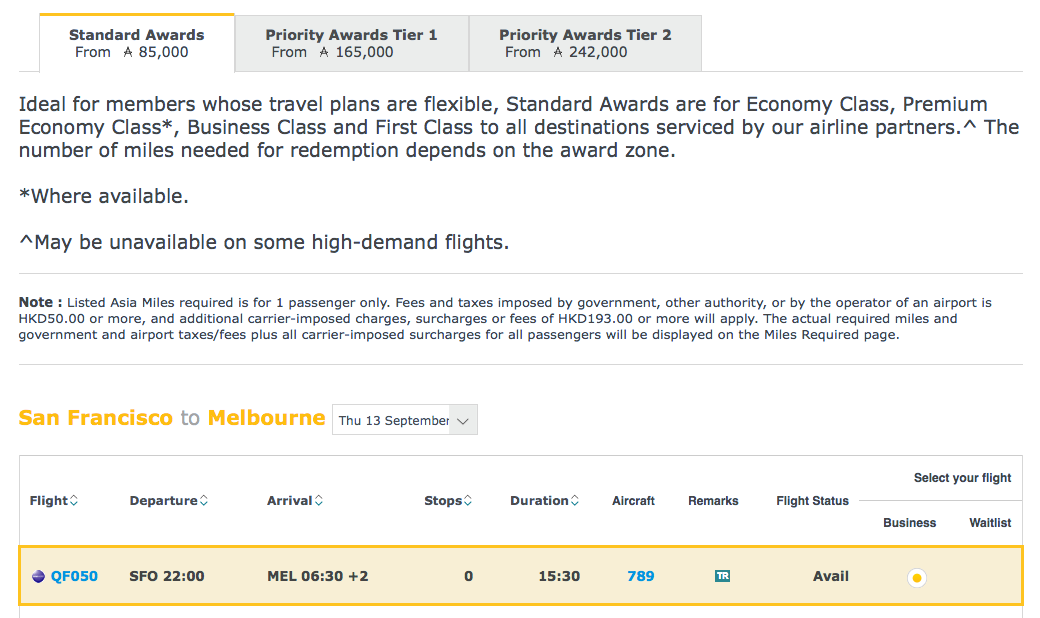 The new route will launch on September 1, and since Qantas is a member of the Oneworld alliance, you can use miles from any Oneworld airline to book this flight. Of course, each airline has their own differing mileage amounts required for this flight. For instance, if you're booking through American, you'll have to spend 80,000 AAdvantage miles plus taxes and fees in each direction. Also, it appears that award flights have only loaded online through the end of the September, even though you can pay cash for tickets at later dates.