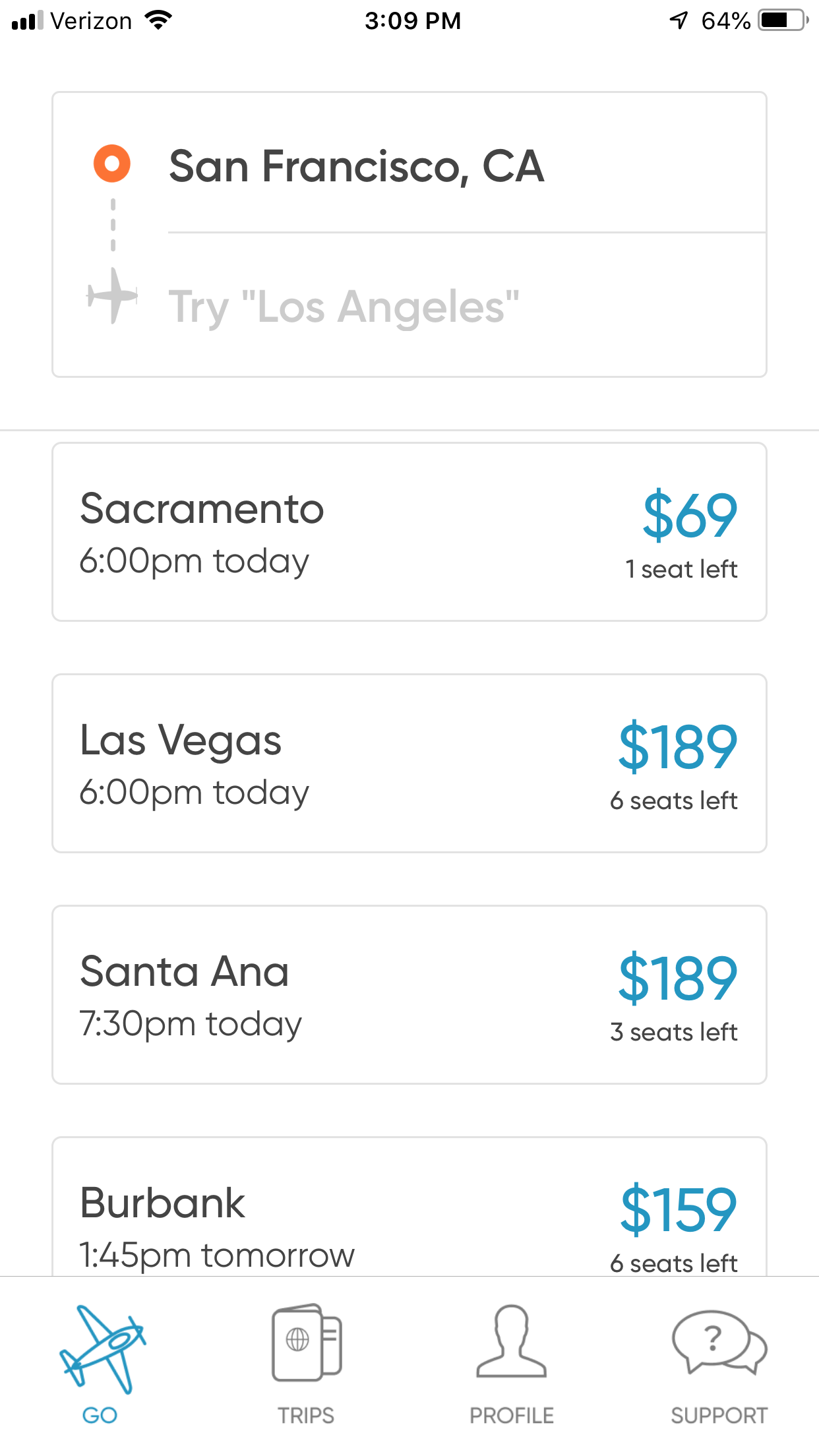 And San Francisco to Sacramento for as low as $69 one-way: