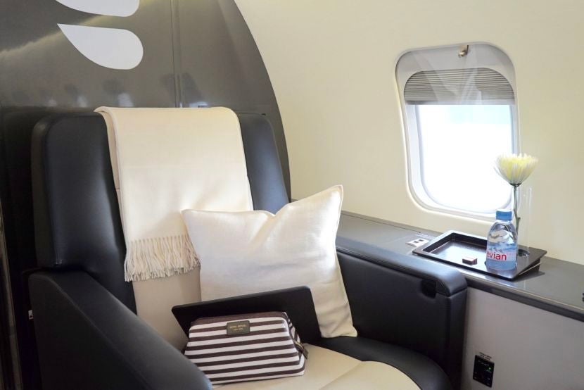 Henri Bendel designed the Dopp kits full of personal care products from boutique brands. Each seat also comes with a set of premium headphones from Master and Dynamic to use with your iPad Pro.