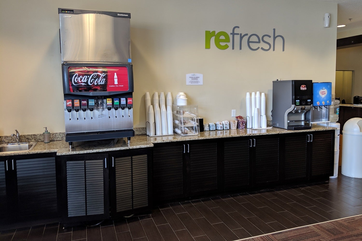 The rest of our 11am presentation group wasn't as punctual, causing a line to form at check-in that lasted through the top of the hour. While we waited, upbeat music played overhead an d a "refresh" bar offered caffeine and sugar fixes.