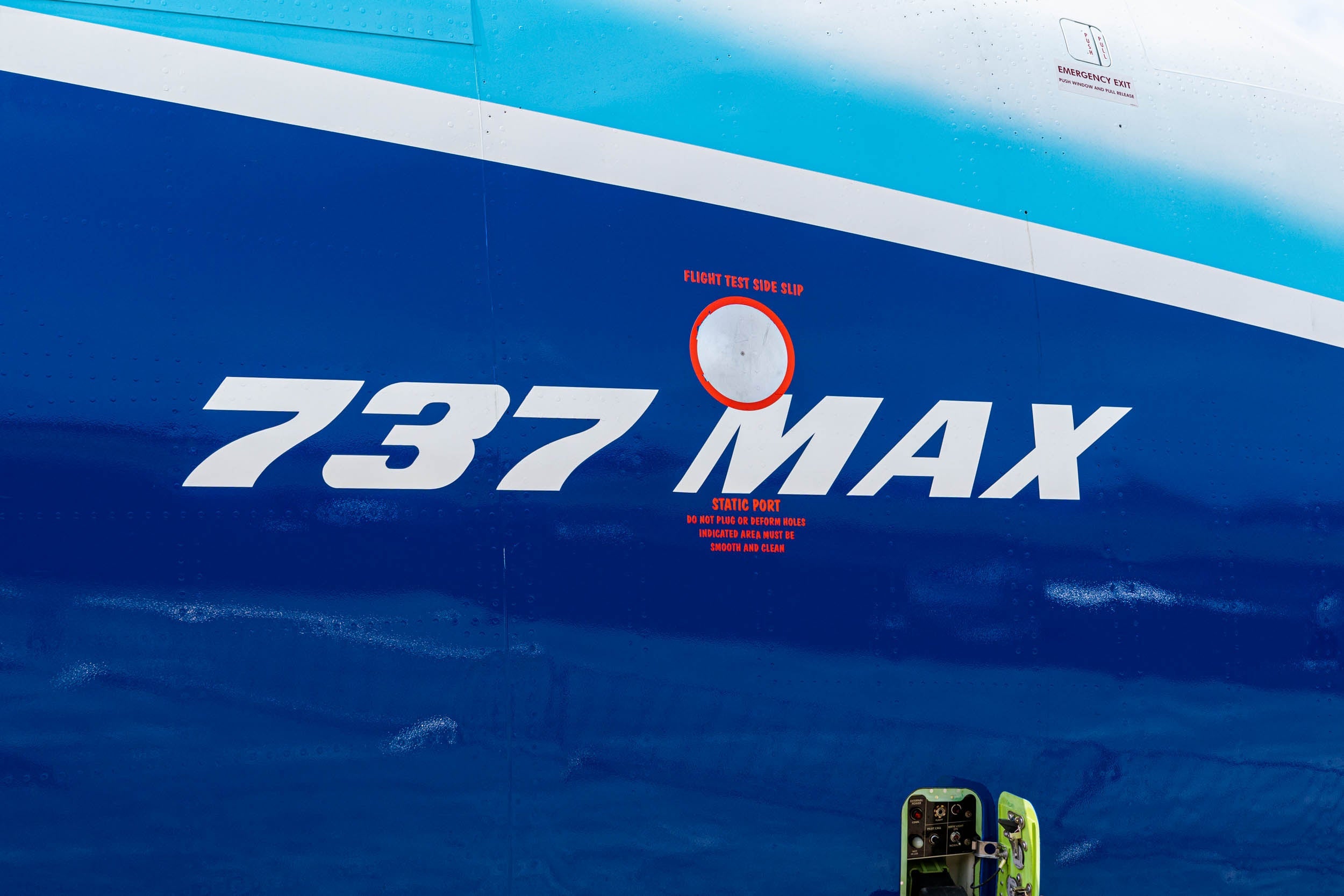 Even the most casual of planespotters should have no trouble figuring out which model this is, between the "737 MAX" branding under the cockpit and on the wingtips, and the oversized 10 on the vertical stabilizer on the tail. Plus, it's painted in a familiar Boeing in-house livery.
