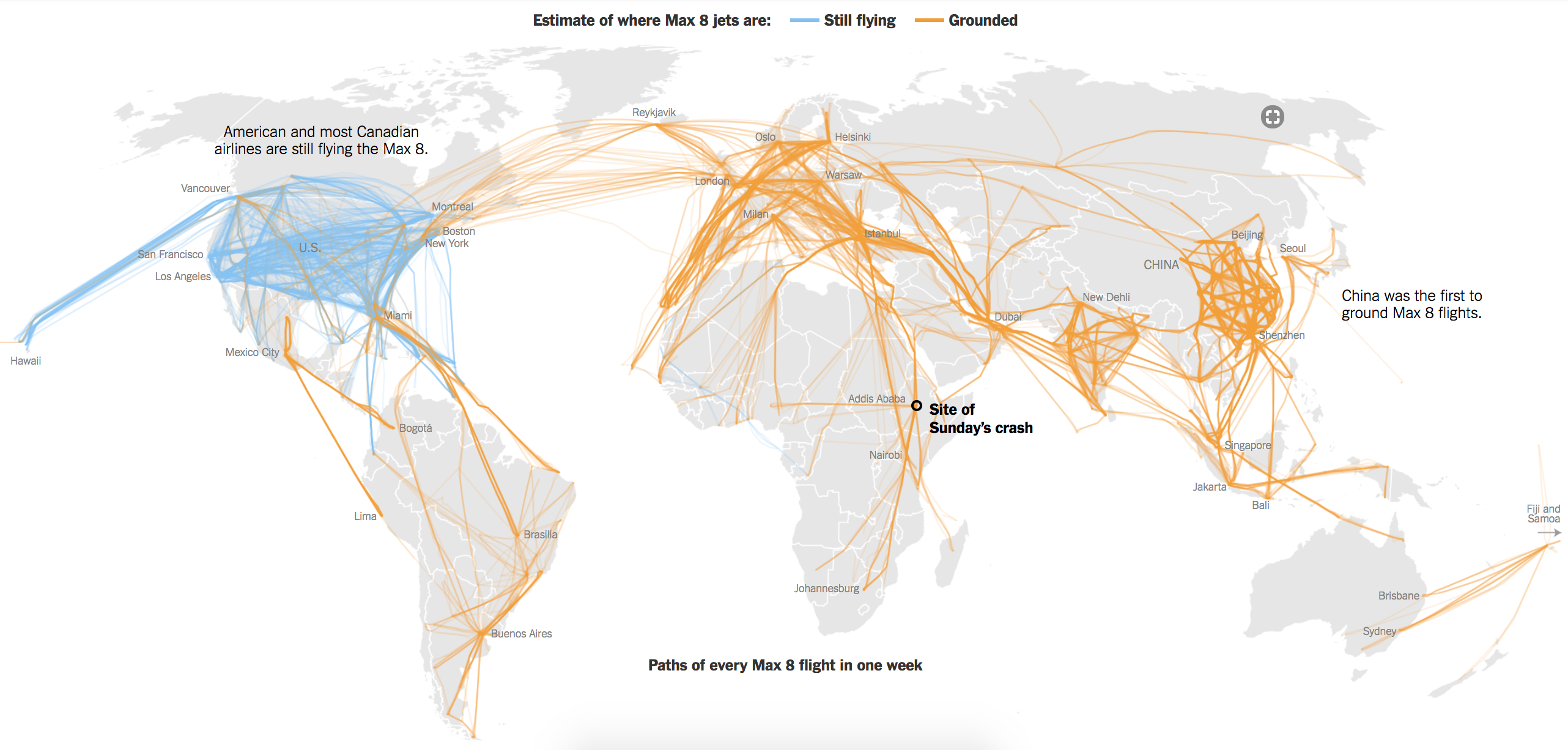 As airlines and countries around the world scramble to ground the 737 MAX after two fata crashes in five months, the United States stands out in stark contrast as the only major aviation country still allowing 737 MAX aircraft to operate within their airspace. Canada, which had been holding out as well, announced Wednesday that MAXes would be banned in Canadian airspace, backtracking on a Tuesday statement to the contrary.
