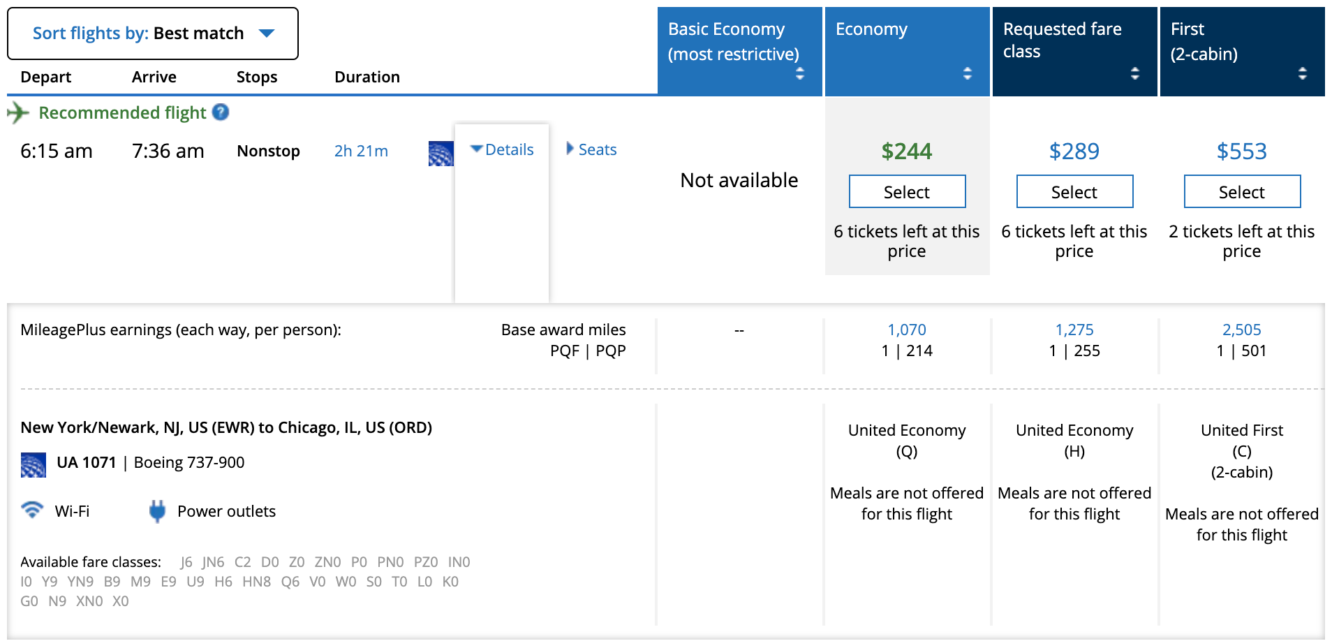 To determine whether or not a given trip qualifies, you can look at the "PQP" earnings for that trip. If you're searching for a one-way itinerary, it's easy to see your PQP earnings on the flight results page — in this case, 214 for the economy flight option, as you can see below.